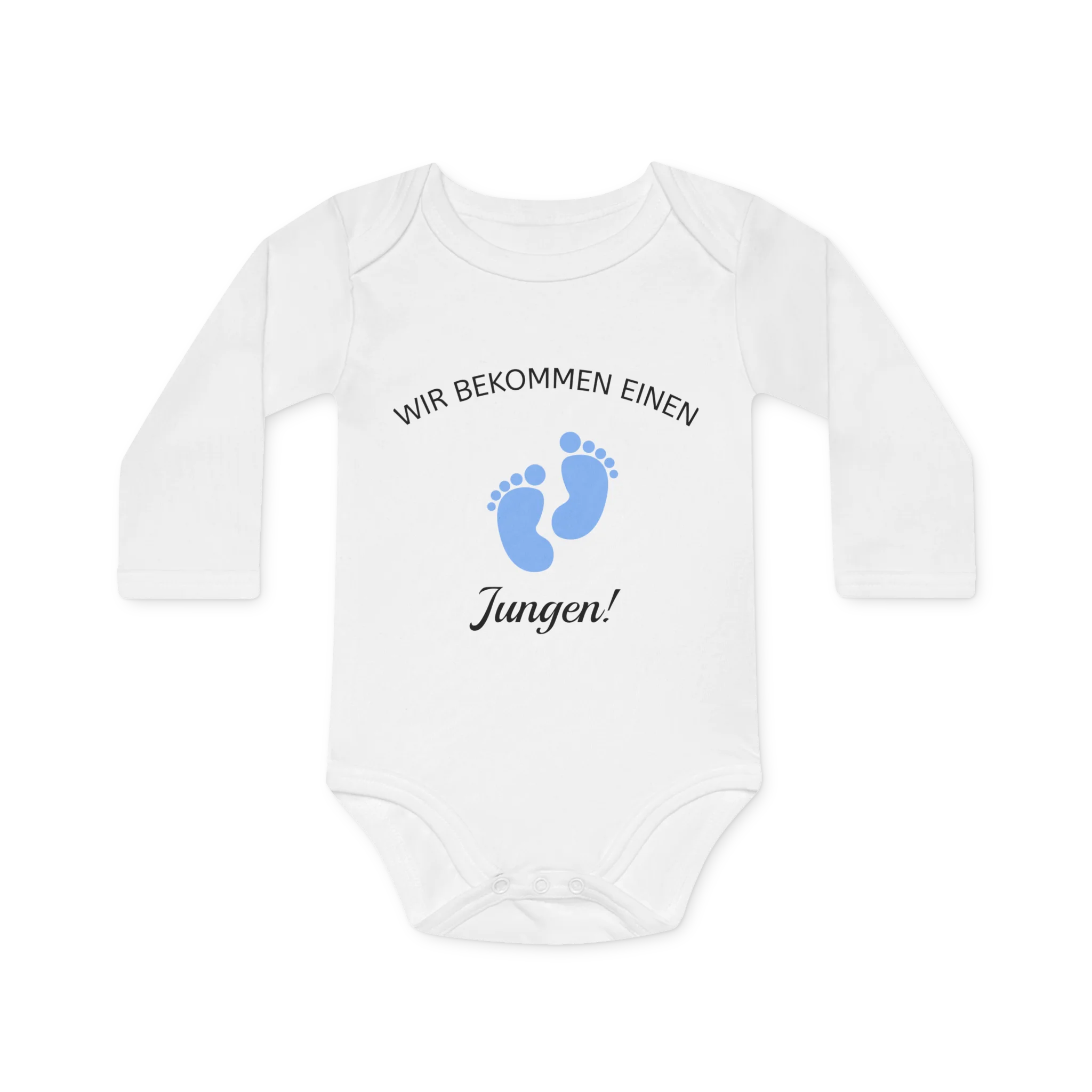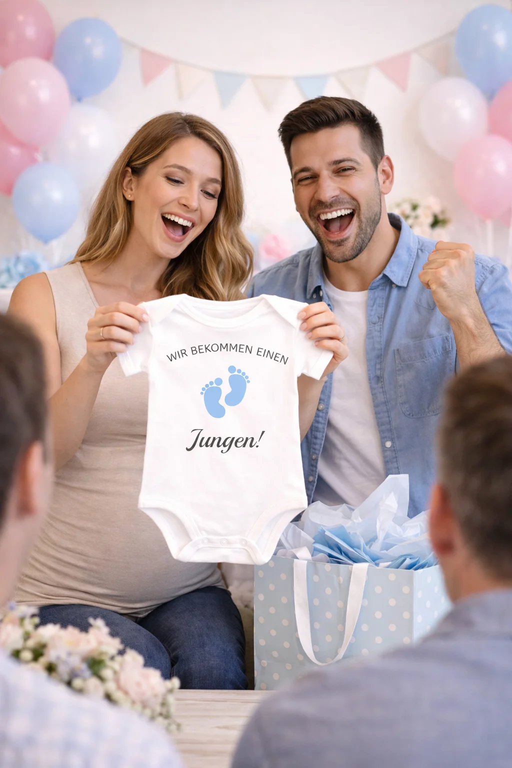 Wir bekommen einen Jungen! Teilt eure Freude mit der ganzen Familie. Dieser liebevoll gestaltete Baby-Body ist das perfekte Outfit für die große Verkündung – ob auf dem Familienfoto, beim Besuch bei Oma und Opa oder als Überraschungsgeschenk.