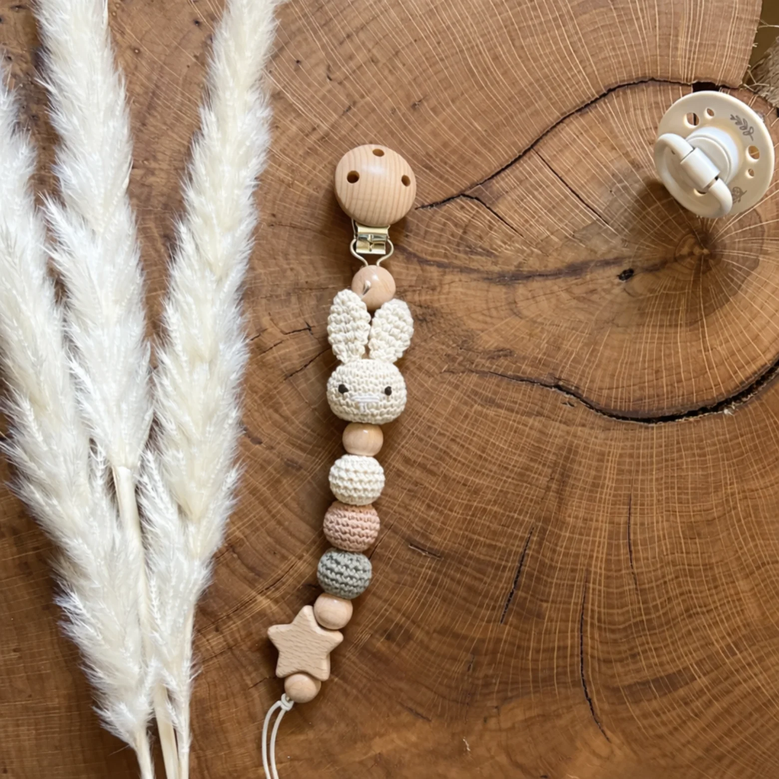 Ja! Schau dir unsere Baby Schnullerkette Hase an – im gleichen Design, perfekt als Set.