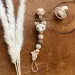 Der Schnuller fällt, die Schnullerkette fängt – und sieht dabei bezaubernd aus. Der kleine Giraffe aus Buchenholz und weicher Baumwolle hält den Schnuller sicher an Ort und Stelle und lädt gleichzeitig zum Greifen und Entdecken ein.