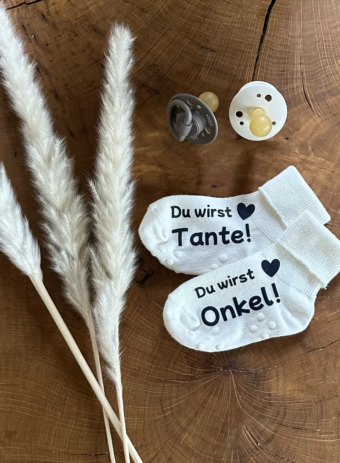 Mit den Baby-Socken „Ihr werdet Tante & Onkel!“ beginnt ein ganz besonderer Moment – persönlich, emotional und unvergesslich. Ob als Überraschung, liebevolle Geste im Alltag oder inszeniert als Erinnerung: Dieses Kleidungsstück sagt mehr als tausend Worte. Der weiche, hochwertige Stoff sorgt für Komfort, der Druck für pure Gänsehaut. Ideal, um die Schwangerschaft stilvoll zu verkünden – mit Herz und Stil.