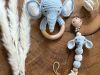 Handgefertigtes Set „Elefant“ besteht aus einer gehäkelten Babyrassel sowie einer passenden Schnullerkette im Elefantenmotiv.