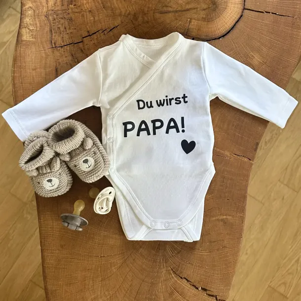 Die Worte „Du wirst Papa“ entfalten ihre volle Wirkung, wenn sie mit einer besonderen Geste verbunden sind. Statt klassischer Mitteilungen bieten sich hier kreative Lösungen an – etwa ein kleiner Body mit dezenter Botschaft oder symbolische Details wie neutrale Babysocken, die beim Öffnen einer Geschenkbox für echtes Staunen sorgen. In Kombination mit einer passenden Jacke oder meinen Wollwalk Overalls kann der zukünftige Vater die erste Baby-Kleidung direkt als Überraschung erleben. Solche Momente bleiben unvergessen und sind oft der emotionale Beginn einer neuen Familiengeschichte.